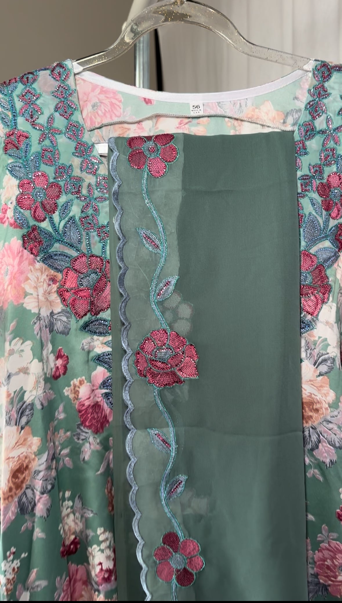 En mukhawar som utstrålar elegans och lugn, dekorerad med subtila blommönster som framhäver dess fräscha och sofistikerade stil. Perfekt för sommarens festligheter.